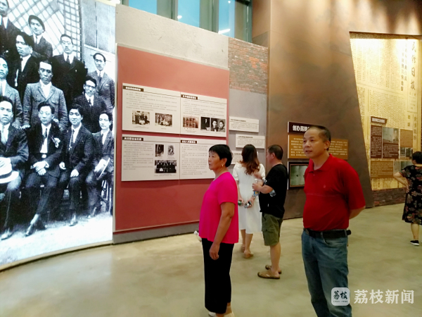 从这座牌坊出发,往东不远,一座红色五角星造型的崭新建筑与七彩荷塘夹道对望。该建筑为红色东进纪念馆、东进村村史馆,馆内展示着靖江军民一心抗战的立体雕塑,两馆共二千余平方米的展区内,以影像资料、实物展出等方式一一展现了抗日战争、解放战争时期与普济庵有关的红色往事。
