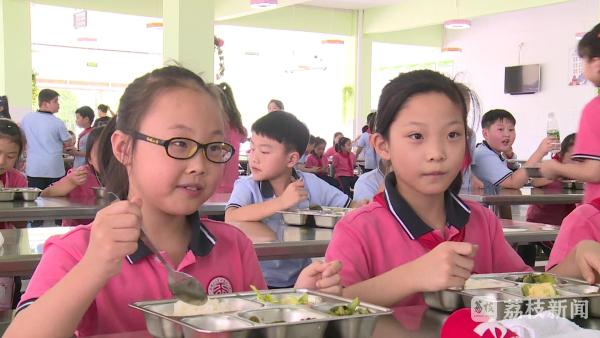 上午11点,放学铃声响起,区实验小学师生们有序进入食堂就餐。