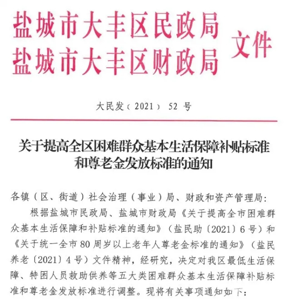 好消息!盐城市大丰区提高困难群众基本生活保障补贴标准啦~