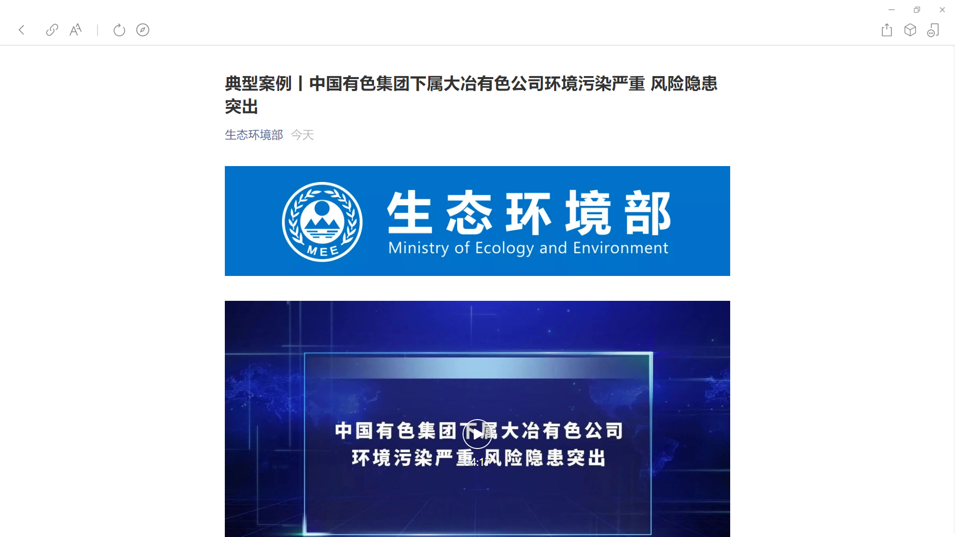 据生态环境部微信公众号消息,第二轮第四批中央生态环境保护督察组查实了一批突出生态环境问题,核实了一批不作为、慢作为,不担当、不碰硬,甚至敷衍应对、弄虚作假等形式主义、官僚主义问题。中央生态环境保护督察集中通报一批典型案例。其中,中国有色集团下属大冶有色公司环境污染严重,风险隐患突出。