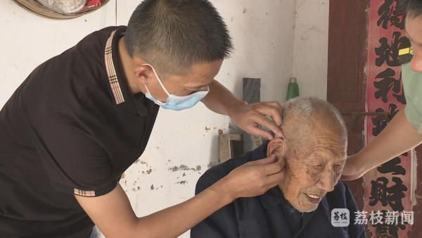今年95岁的林正悦在1945年8月入伍,1952年5月退伍,7年的时间里,他奋勇战斗,不畏牺牲,小伤大伤不断,在1949年元月辽宁章武南王家屯战斗中更是身负重伤,左肩被子弹贯穿而过,与此同时耳朵的听力也遭受了重创,这也影响到了他晚年的生活质量。“林老是抗战老兵,他在部队里面因为炮弹、炮声损伤听力,年轻的时候还可以,现在随着年龄的上升,已经听不到声音了,之前他使用过助听器,这次我们在调查走访的过程中,了解到他已经完全散失听力,我们就申请为他配发一个,今天送上门来为他佩戴好,教他使用方法,这样就能正常交流,也为他的生活带来一些便捷。”泗阳县退役军人事务局优抚科科长王好说。