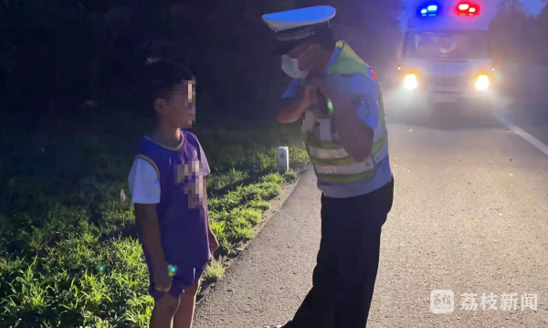 9月5日晚上7时许,徐州邳州市公安局交警大队土山中队指导员高山带队在250省道巡逻时,发现一名十岁左右的孩子正在路上独自行走,不时有车辆从孩子身边驶过,十分危险。高山见状立即对孩子进行询问。