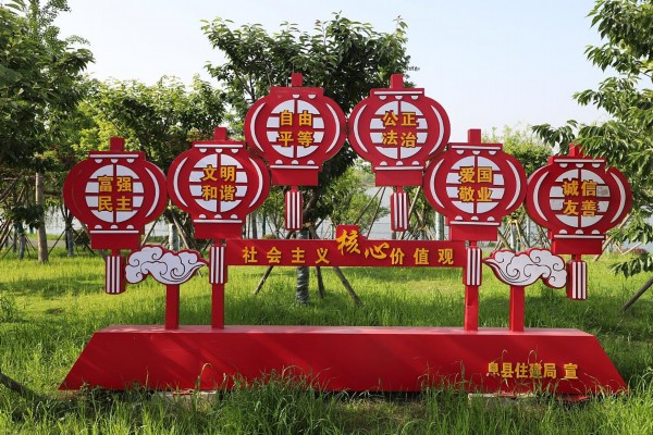 河南信阳:社会主义核心价值观宣传栏 图片来源:视觉中国