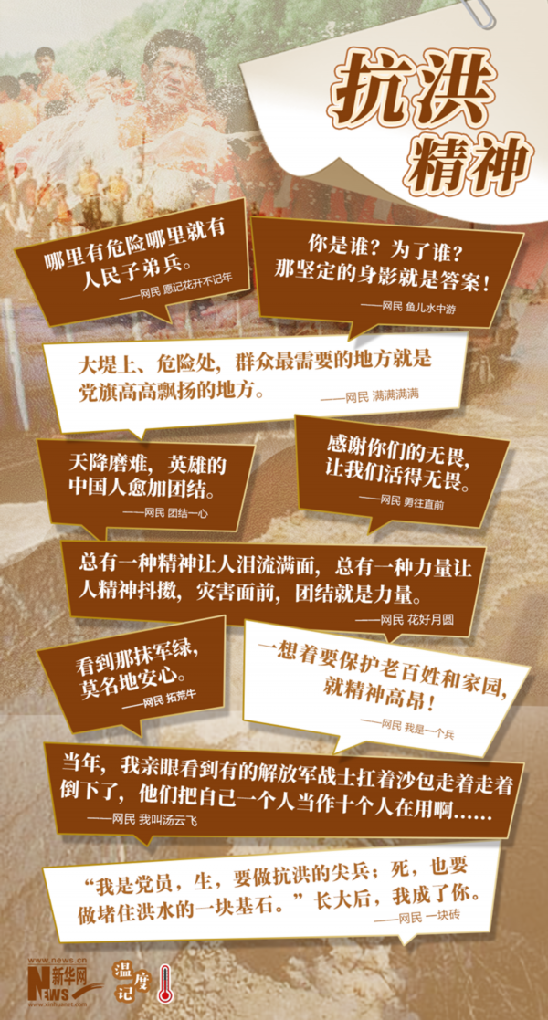 压力和灾难能够催生伟大的品格,锤炼人们的意志和能力。在那一场气壮山河的抗洪抢险斗争中,举国上下齐心协力,凝聚在一起,形成了万众一心、众志成城,不怕困难、顽强拼搏,坚韧不拔、敢于胜利的抗洪精神。历经时间淬炼,抗洪精神已经成为中华民族无比珍贵的精神财富,鼓舞和激励我们克服种种困难,不断取得一个又一个胜利。时间已经证明,有了这种精神形成的雷霆万钧之势,面对洪灾,“洪水涨一尺,我们斗志高一丈”;永葆这种精神,我们一定会像战胜凶猛的洪水一样,克服一切艰难险阻!(文字:徐可 海报设计:王晔)