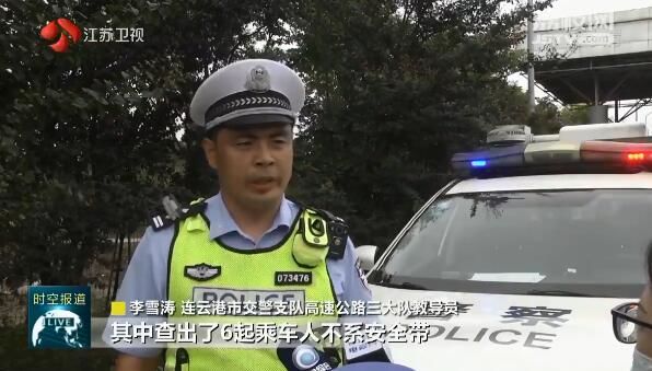 连云港市交警支队高速公路三大队教导员李雪涛说:“我们刚才查了有5分钟,就查出了6起乘车人不系安全带,分别被我们罚了20元钱的行政处罚。”