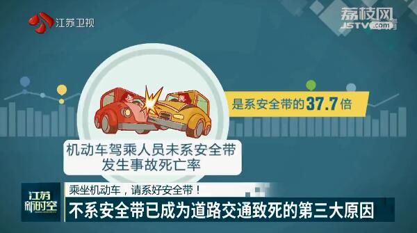 另据公安部交管局调查显示:不系安全带已成为道路交通致死的第三大原因,仅次于超速行驶和酒后驾驶。机动车驾乘人员未系安全带发生事故死亡率,是系安全带的37.7倍,发生事故从车尾甩出的乘员,75%会因伤势过重身亡,而系上安全带将大大提高安全保护作用。处罚不是目的,他律不如自律,为了自己的安全考虑,请大家无论是前排还是后排,务必系好安全带这根“救命带”。
