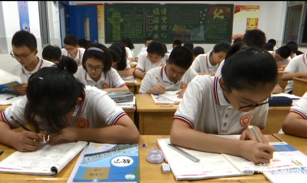 晚上七点多,南通市实验中学教学楼灯火通明,学生们正在教室里写作业。学校党总支书记、校长沈明明说,晚自习从晚上6点开始,学生们在两个多小时的时间里,尽量把书面作业完成。“我们安排三个课时,主要的服务内容一是为学生答疑解惑,二是阅读与指导,三是学生自主完成当天的作业,确保绝大多数同学在校完成书面作业。”