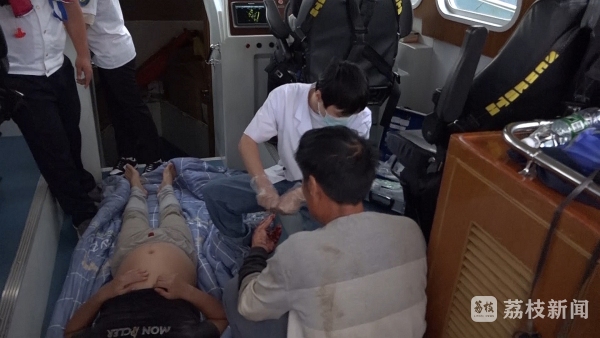 凌晨5点钟左右,全速航行的海巡艇发现了返港的渔民,但此时的海上风浪较大,阵风达到七级左右,海巡艇经过几次尝试,才成功与渔船靠近。在渔民的帮助下,受伤的两名渔民被转移到海巡艇上,随海巡艇出海的急救医生随即对伤者的伤口进行了处理。