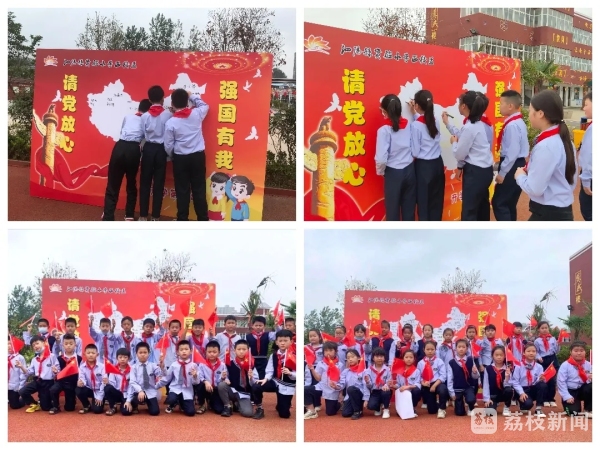 同学们还纷纷在“请党放心,强国有我”签名墙上签名,立志成为新时代强国少年。
