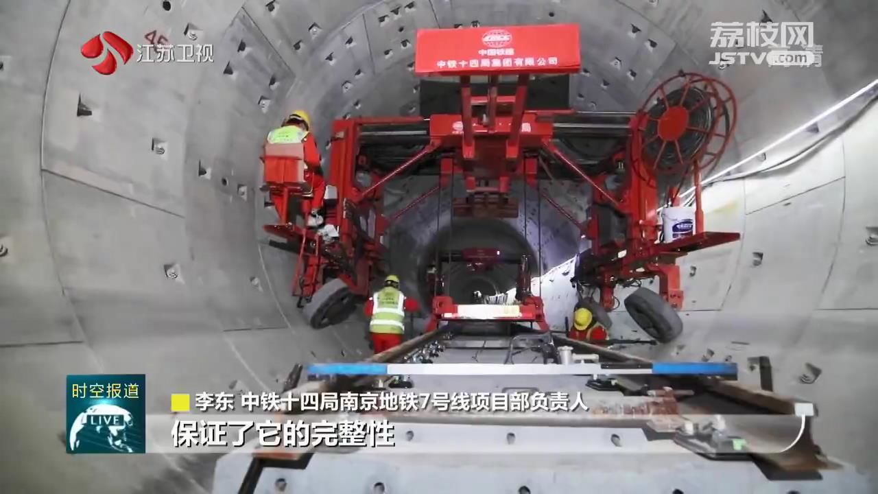 中铁十四局南京地铁7号线项目部负责人李东介绍,所谓“无轨化”,就是不在管片上进行定制螺栓、安装走行轨,这样就避免了管片的破坏,保证了完整性,对于质量控制更优,效率要提高两倍以上。