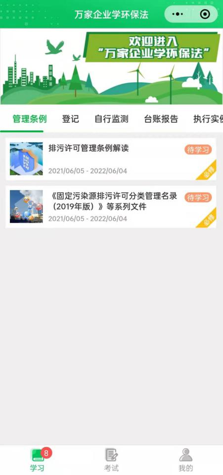 线上学习平台助企业学好环保法“必修课”。6月5日,在2021年无锡市“环境月”活动启动仪式上,无锡市“万家企业学环保法”小程序正式上线,以学习2021年《排污许可管理条例》为主、其他环保相关法律法规为辅,为万家企业提供学习平台,同时设置了线上考试环节,督促企业对重点知识深化了解。截至9月8日,全市已有16264家企业完成学法小程序注册,13304家企业通过学法考试,注册数、考试数均破万。通过小程序学习的方式既便捷又新颖,有效提升了企业的环保意识、守法意识、主体责任意识和环保专业能力。