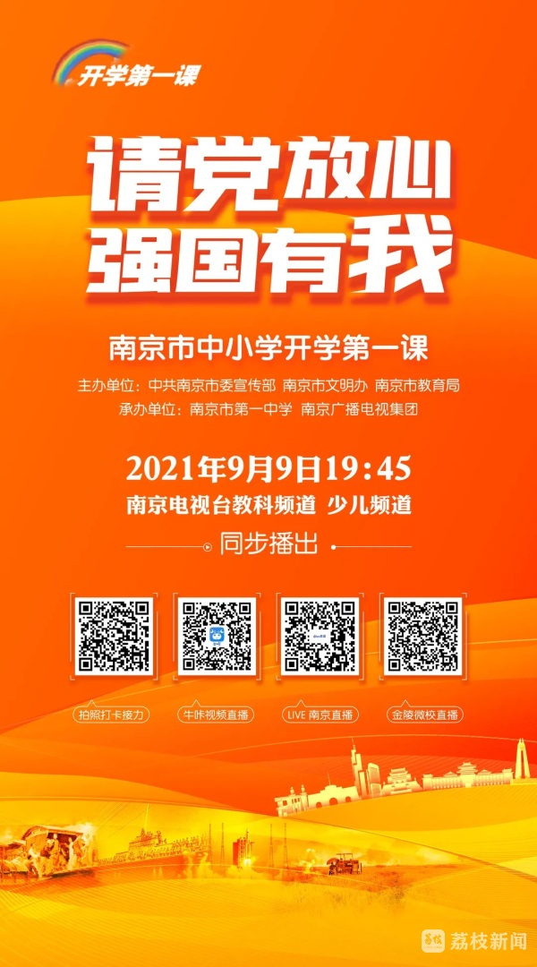 此外2021年南京市中小学开学第一课将于9月9日19点45分播出,欢迎大家届时收看。