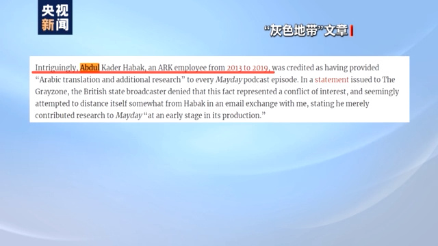 BBC表示一名叫做阿卜杜勒-卡德尔·哈巴克的研究员参与了事件的调查。值得注意的是,阿卜杜勒-卡德尔·哈巴克社交网站的自我介绍中写道:“曾经在2013年到2019年为英国领导的承包商方舟公司(ARK)工作过。”