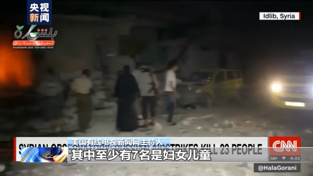 美国有线电视新闻网主持人:俄罗斯空袭杀死了23人,叙利亚人权观察组织说,其中至少有7名是妇女儿童。