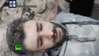在这段视频中,一开始,轰炸的受伤者、救援人员全体静止不动。但在“开拍”令下后,受伤者面露痛苦状,救援人员将他抬起,把他的腿从废墟中移出,并将他抬离废墟现场。很明显,这段视频是在现场摆拍。