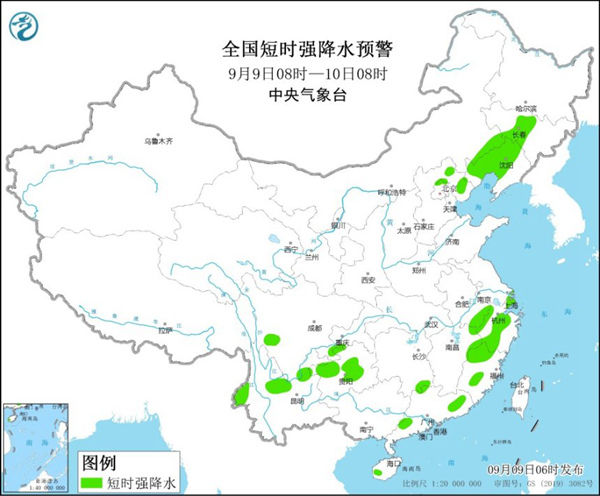 中央气象台9月9日06时发布强对流天气蓝色预警: