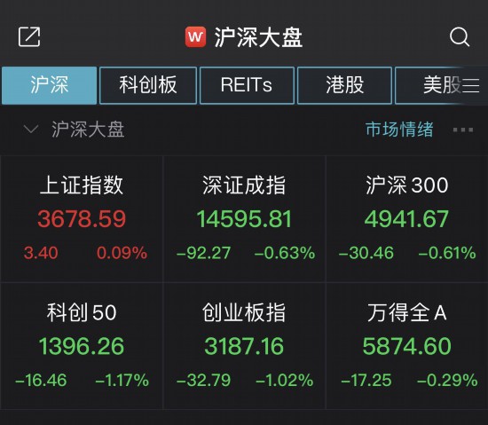 中新经纬客户端9月9日电 截至9月9日午间收盘,三大指数收盘涨跌不一。上证指数涨0.09%,报3678.59点。深证成指跌0.63%,报14595.81点。创业板指跌1.02%,报3187.16点。