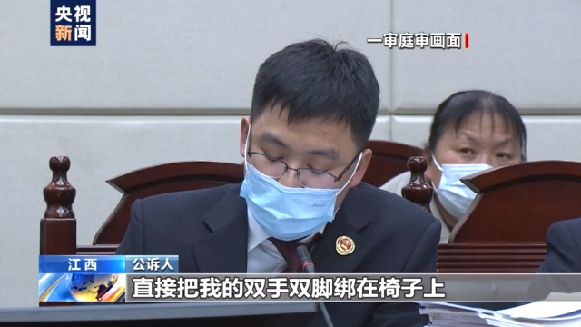 公诉人:那位坐台小姐拿出几根铁丝,直接把我的双手双脚绑在椅子上,我双脚的脚踝、膝盖用铁丝绑在椅子脚上,胳膊用铁丝绑在椅子靠背上。他们之间很有默契,绑我的时候都没有怎么交流。