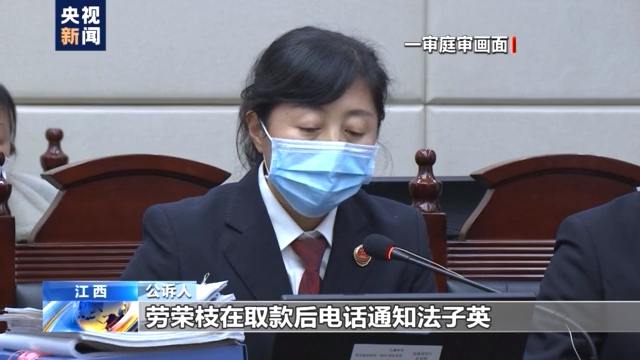 公诉人:劳荣枝在取款后电话通知法子英,钱已到手。这个是给法子英一个非常重要的提示信号,就是成功取款,法子英就可以自由善后了。
