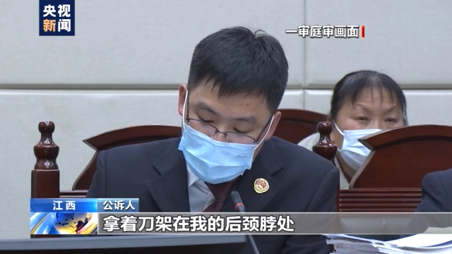 公诉人:那个女的看到我在挣扎,就站在我身后,拿着刀架在我的后颈脖处,威胁我说不许动,再动就杀掉你。