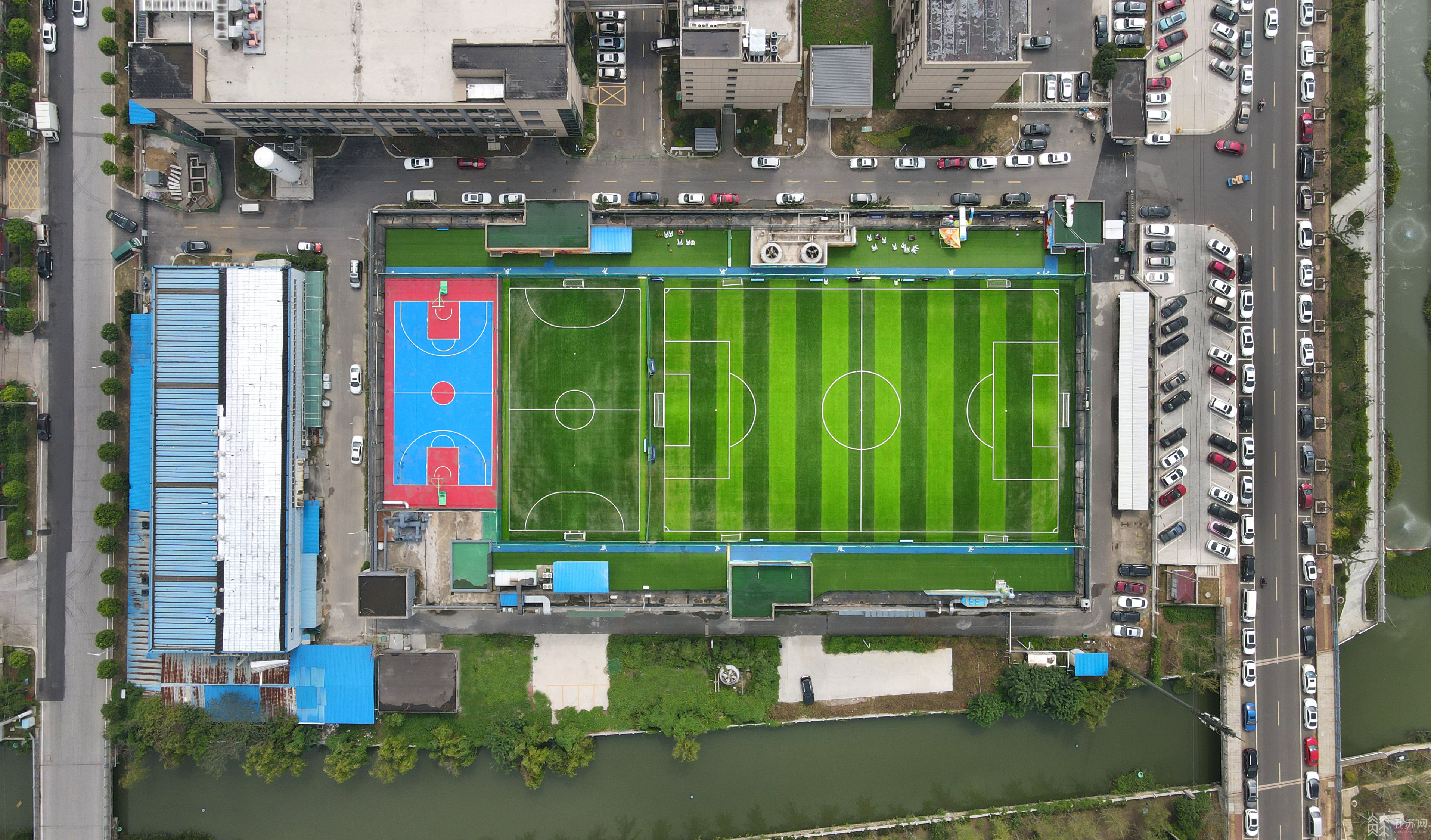 场地清理、防水处理、铺设彩色软底塑胶、安装外围围栏……经过两个多月的紧张施工,一个集2665平米的八人制足球场、1021平米的五人制足球场和525平米的标准篮球场于一休的“空中运动场”全新亮相,运动场四周还建有卫生间和沐浴间,“中国梦”彩绘的设备间外墙面上,安装了电子显示屏,不但可以播报比赛得分,而且还能播放宣传视频,新安装的外挂电梯可以直达楼顶“空中运动场”,极大方便了前来运动健身企业职工和周边居民群众。(来源:江苏广电无锡中心站/路明杰)