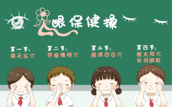 (2)穴位按摩(眼保健操)。孩子们在学校里经常做的眼保健操就是运用了中医穴位按摩的原理,孩子没近视之前,就可以采取预防保护措施,已经近视的孩子也可通过做眼保健操缓解眼疲劳,从而减缓近视的发展进程。