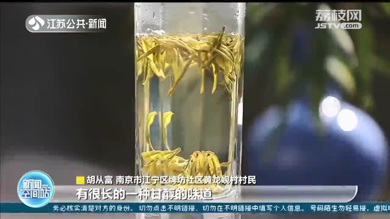 刚一见面,南京市江宁区江宁街道牌坊社区黄龙岘村村民胡从富就打开话匣子向记者介绍起黄龙岘的茶。他说:“这个叫龙针茶。黄龙岘茶最大的特点,泡出来是金黄色。先闻一闻,抿一小口回味一下,有一种很长的甘醇的味道。”