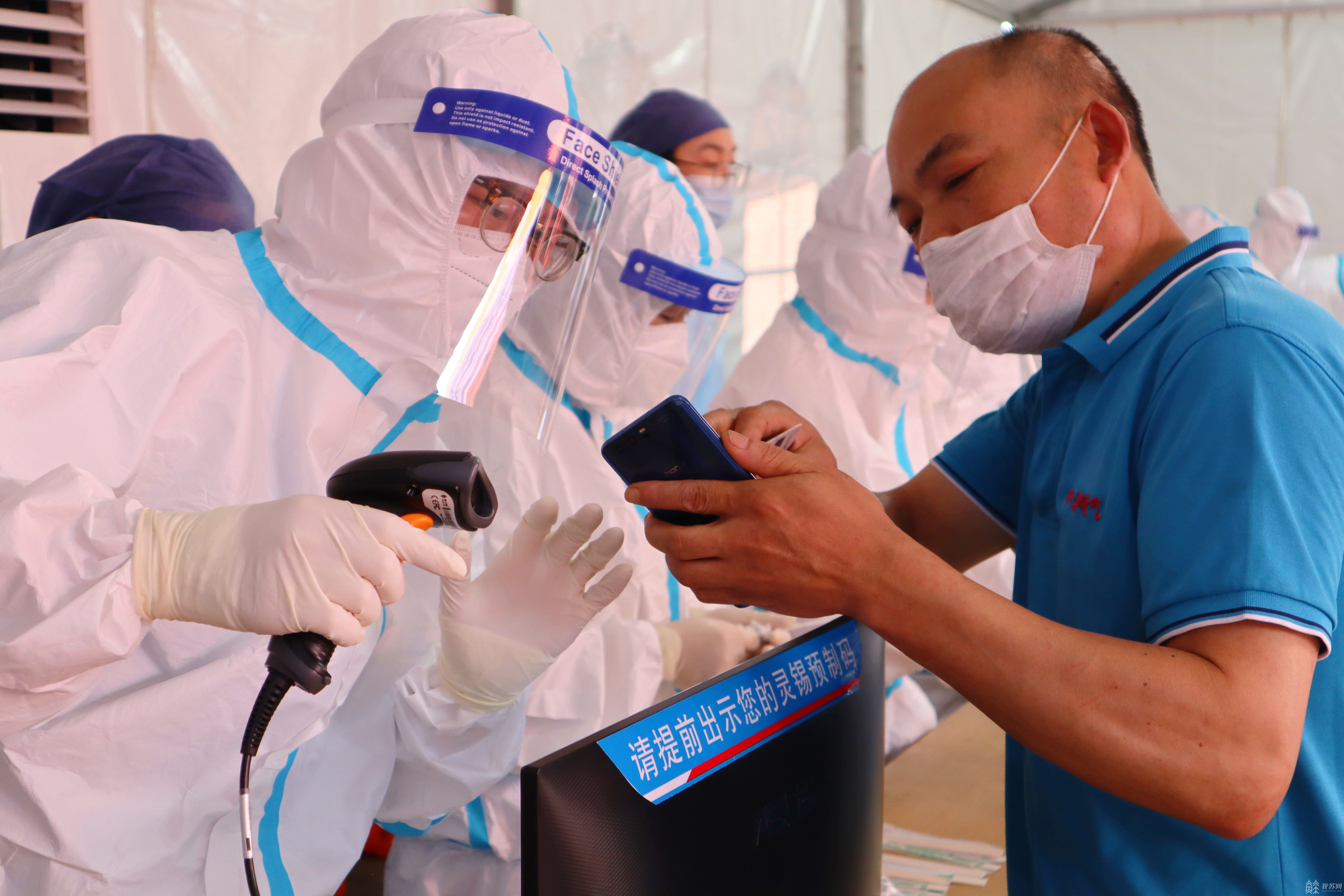 8月3日上午9点,气温35度。东港镇首场全员核酸采样演练拉开序幕:医护人员熟练地穿上密不透风的防护服,扫码登记、采样、消毒..... “小朋友,看阿姨,来,我们张嘴,啊......”采样现场,一切流程都在紧张有序地进行着。全员动员、全员配合、全员参与,面对可爱的“大白”,无论男女老少,都由衷地竖起了大拇指夸赞到“辛苦了,你们真棒!”。作为首场压力测试点,规范的流程、细致的服务、娴熟的技能,一次完整的全员核酸检测压力测试,更好地检验了卫生院的物资储备、队伍组建、现场协调和指挥体系运转等情况。“感谢每一位全力以赴的医务人员,健康有我,请群众们放心!”东港镇卫生院院长孙明说。目前,全镇布局了18个类似的全员核酸采样点,配备了165名医务人员,正加紧布置、培训演练,随时待命。