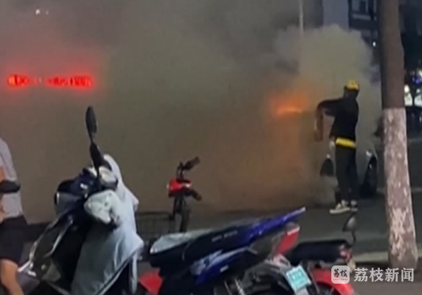 据了解,起火的是一辆电动小轿车,当时这辆车途经泗洪县城区东风菜市场东门附近时突然冒起浓烟,紧接着燃起大火。“因为车是在行驶途中起火的,很突然,所以过路群众都不知所措。”目击者介绍,随后就发生了视频中外卖小哥救火的一幕。