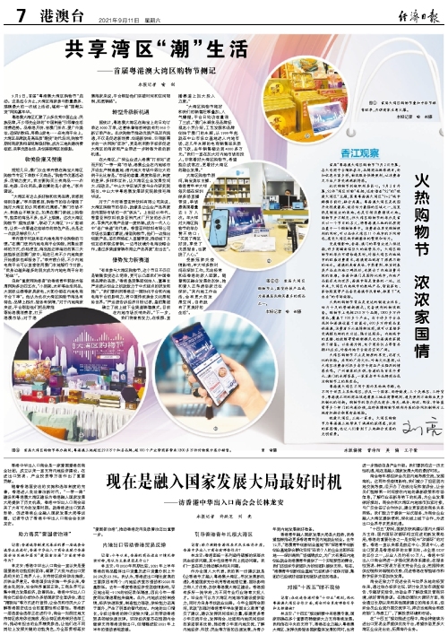 火热的购物节背后是发达的制造业体系,活力十足的营销新模式,完备便利的物流配套。购物节上亮相29.8万个品牌,1300多万件商品,覆盖了100多个产业。由于许多平台在深圳和港澳设置了前置仓,600多万种商品直供港澳,消费者不必选择转运商,便可以直接享受满额包邮的次日达、隔日达服务。内地城市的直播、短视频等营销新模式也为港澳卖家提供了借鉴。以香港为例,电子商务仅占零售总额4%左右,对接内地平台经济空间广阔。