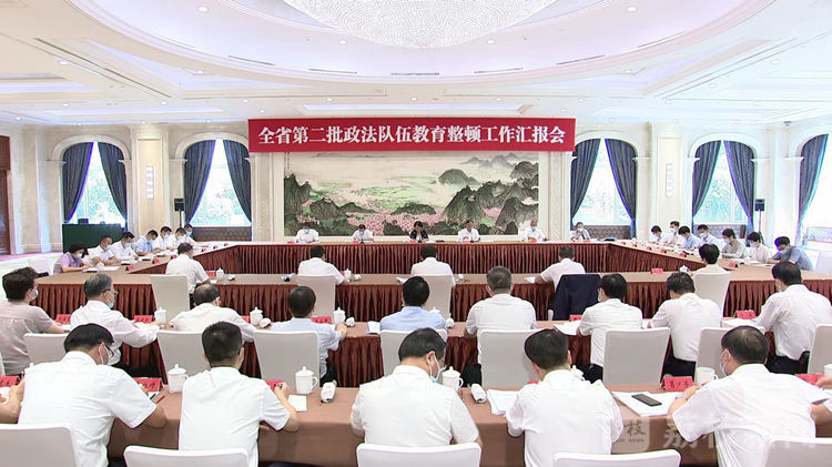 省委常委、政法委书记费高云汇报了我省第二批政法队伍教育整顿工作相关情况。中央督导组全体成员,副省长、省公安厅厅长刘旸,省法院院长夏道虎,省检察院检察长刘华,省级政法各单位负责同志,中央政法机关驻江苏派出机构和直管单位主要负责同志,省政法队伍教育整顿领导小组成员等参加会议。