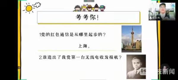 裴远鹏着重介绍了中国共产党历史上的第一部无线电台的建立。当看到《永不消逝的电波》主人公李强同志面对反动派的追捕,镇定的发出最后一份电报,英勇就义的时候,孩子们被党艰苦奋斗的历程和不怕牺牲的精神所感动。