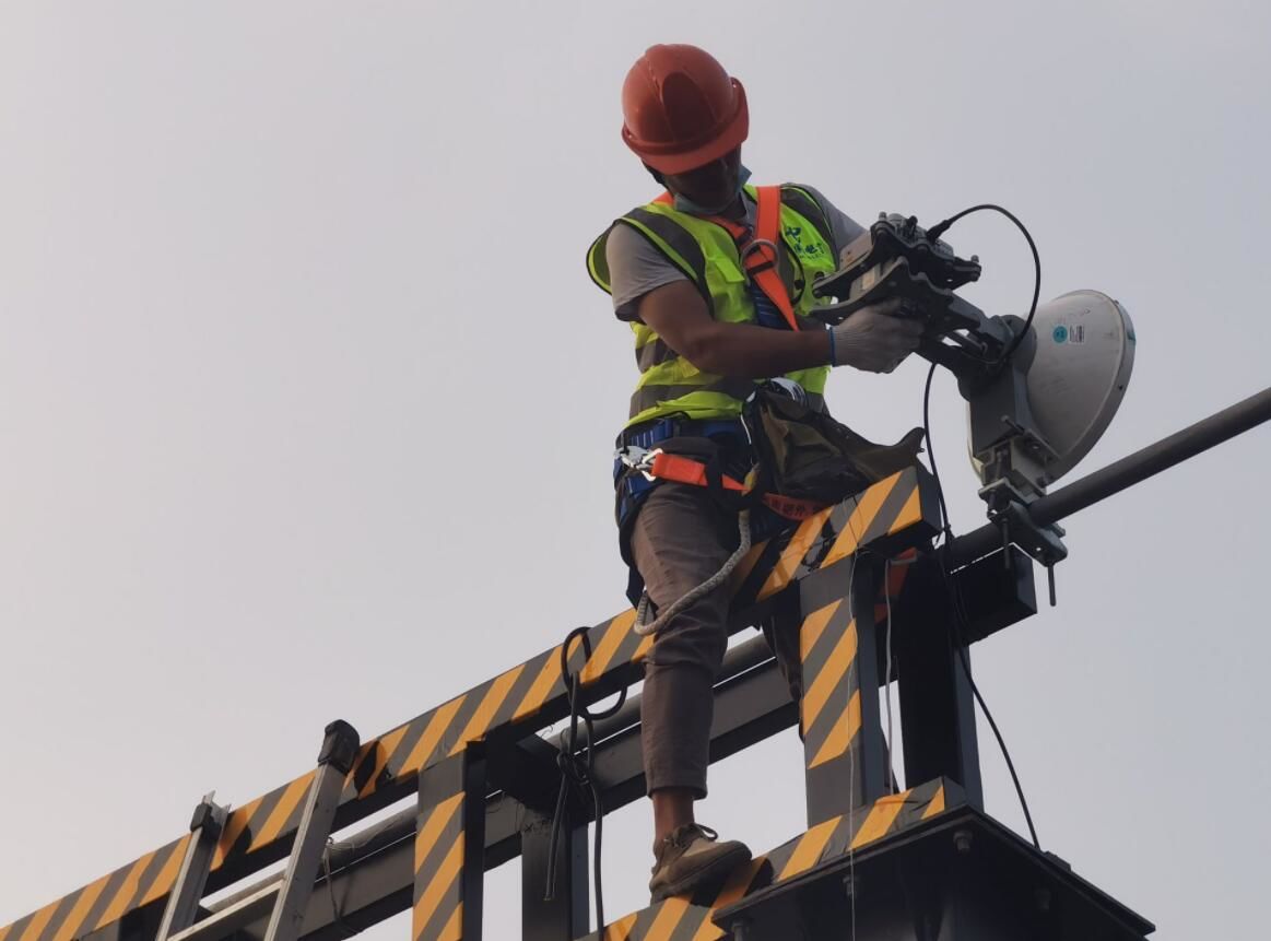 事故发生后,扬州电信无线维护中心立即召开协商会,经现场分析研判,认为在目前情况下采用数字微波中继应急系统可以最短时间内恢复无线信号。经过现场查勘、设计、协调、安装、微波调试、山河村与河对岸两侧光缆施工开通、电源施工、基站割接等环节,仅用8小时即抢先开通山河村2个5G宏基站。经现场测试,村内无线网络各项指标恢复正常。这次应急通信采用的数字微波应急系统是全省首例,也是唯一一家最短时间内恢复无线网络信号的通信运营商。