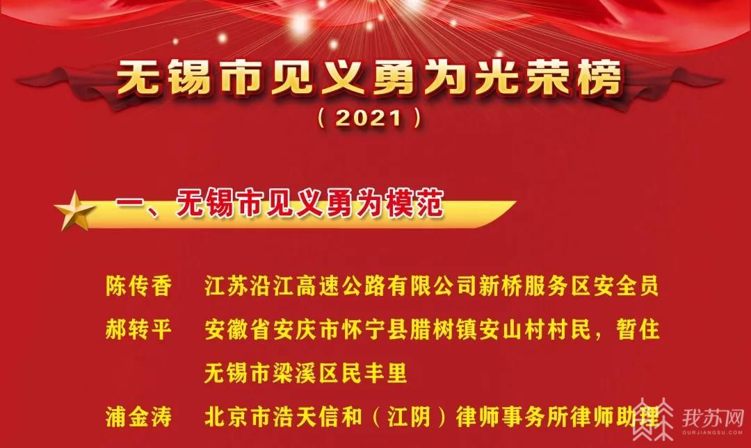 陈传香等3人获“无锡市见义勇为模范”称号;