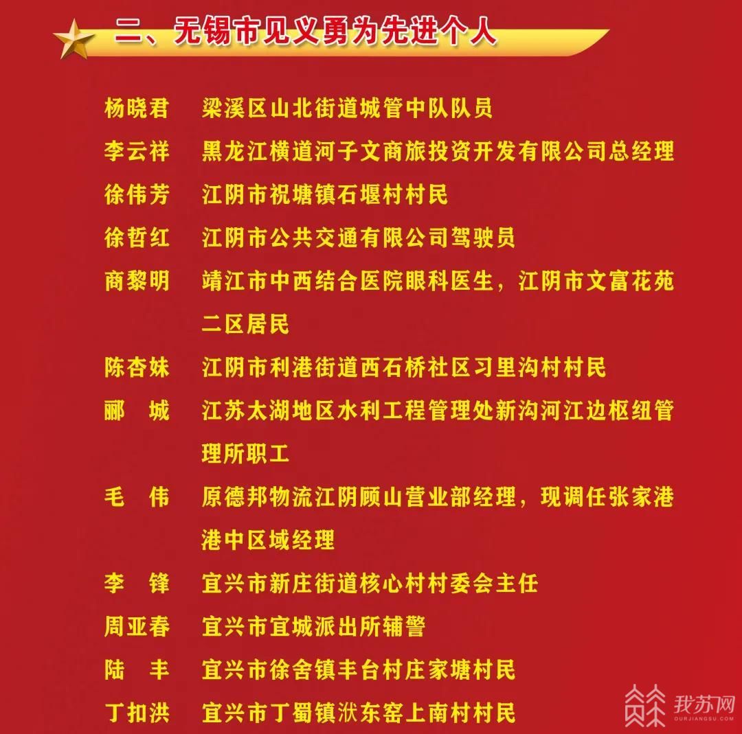 杨晓君等27人获“无锡市见义勇为先进个人”称号;