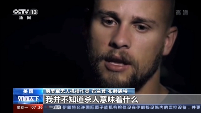 前美军无人机操作员 布兰登·布赖恩特:(上级命令我)你的工作就是杀人和破坏,美军无人机操作员都是在高中刚毕业的男生和女生中招募。他们并没有丰富的社会经历,他们基本上也就是电子游戏玩家,经过4个月的训练,就可以决定被袭击者的生死。