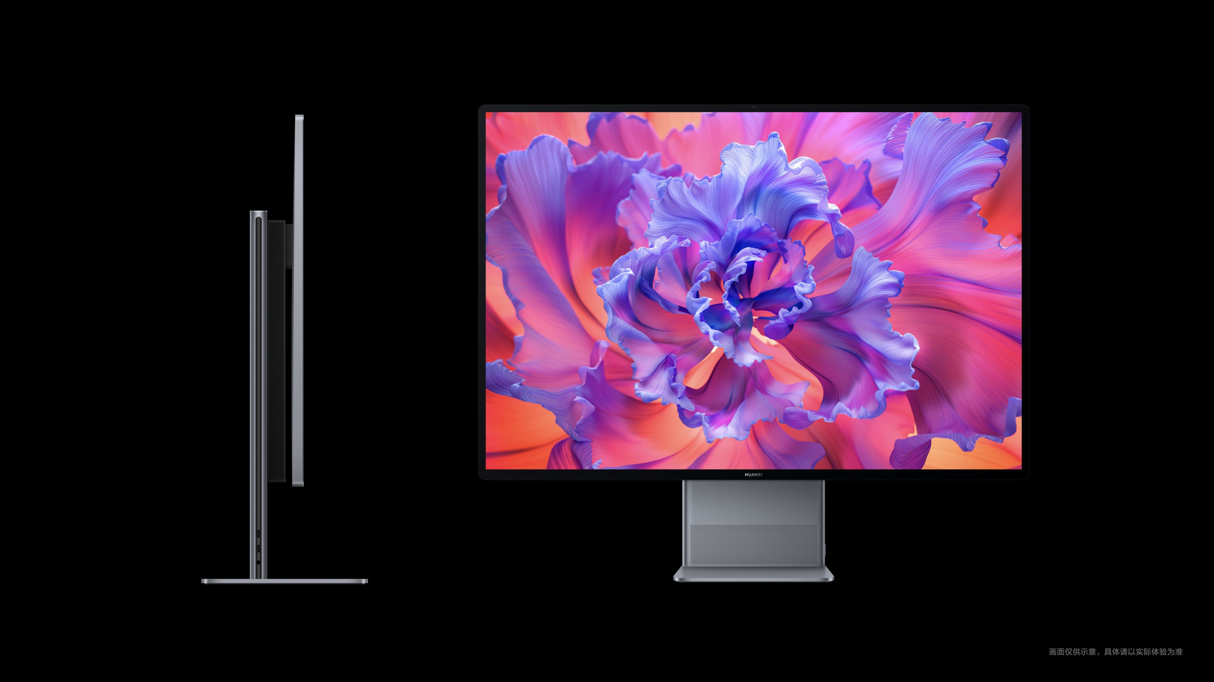 华为称这款产品采用悬浮贴合工艺,四边窄边框,打造扑面而来的无边视觉,相比某些“带着大下巴(厚底边框)”的竞品,才是“真正把大屏幕还给用户”。
