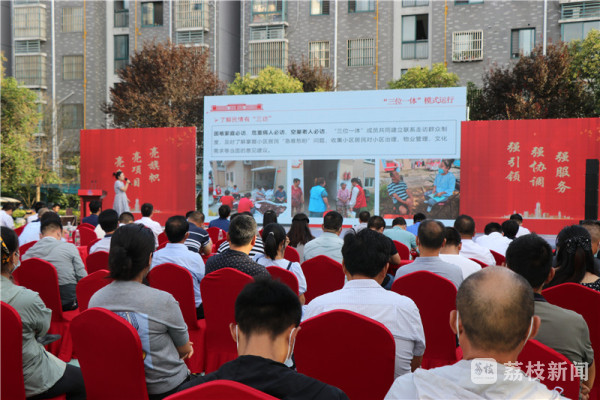 近日,宿迁市宿豫区举办“把支部建进小区”亮旗帜、亮项目、亮身份,强引领、强协调、强服务“三亮三强”风采展示活动。活动现场,部分社区党组织书记对小区“三位一体”工作进行推荐,被推荐小区代表上台,向群众展示工作做法及成效。