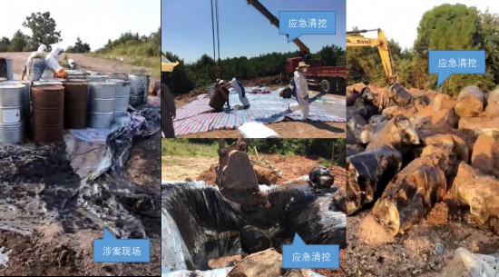 结合填埋物危险特性,为避免污染进一步扩散,经生态环境部门、公安和检察机关共同研究,决定在雨季来临之前将被填埋的危险废物应急清运至危废处置单位妥善贮存,现场共清运危险废物和污染土壤200余吨。