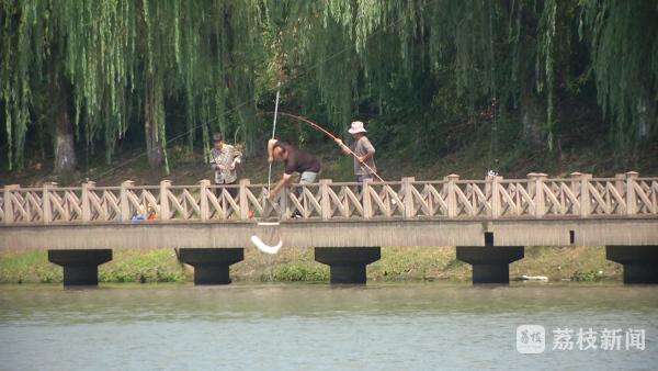 有市民向记者反映:在南京中和桥附近,有人违规钓鱼,一个竿上有十几个鱼钩。接到举报后,记者立即赶到现场。记者来到秦淮河中和桥段,河堤两岸有二三十位市民正在钓鱼。现场不少钓鱼的市民表示:他们钓鱼纯属打发时间,娱乐娱乐,都是一人一竿一钩,不过也有部分钓友不自觉,使用抛竿钓鱼。