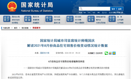 央视网消息:据国家统计局网站消息,国家统计局城市司首席统计师绳国庆解读2021年8月份商品住宅销售价格变动情况统计数据。