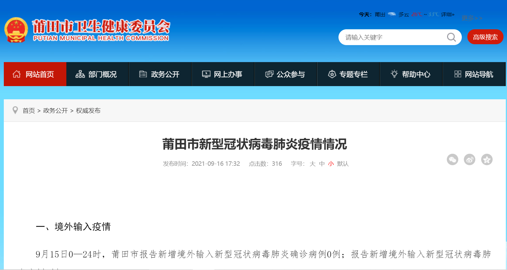 莆田卫健委网站截图