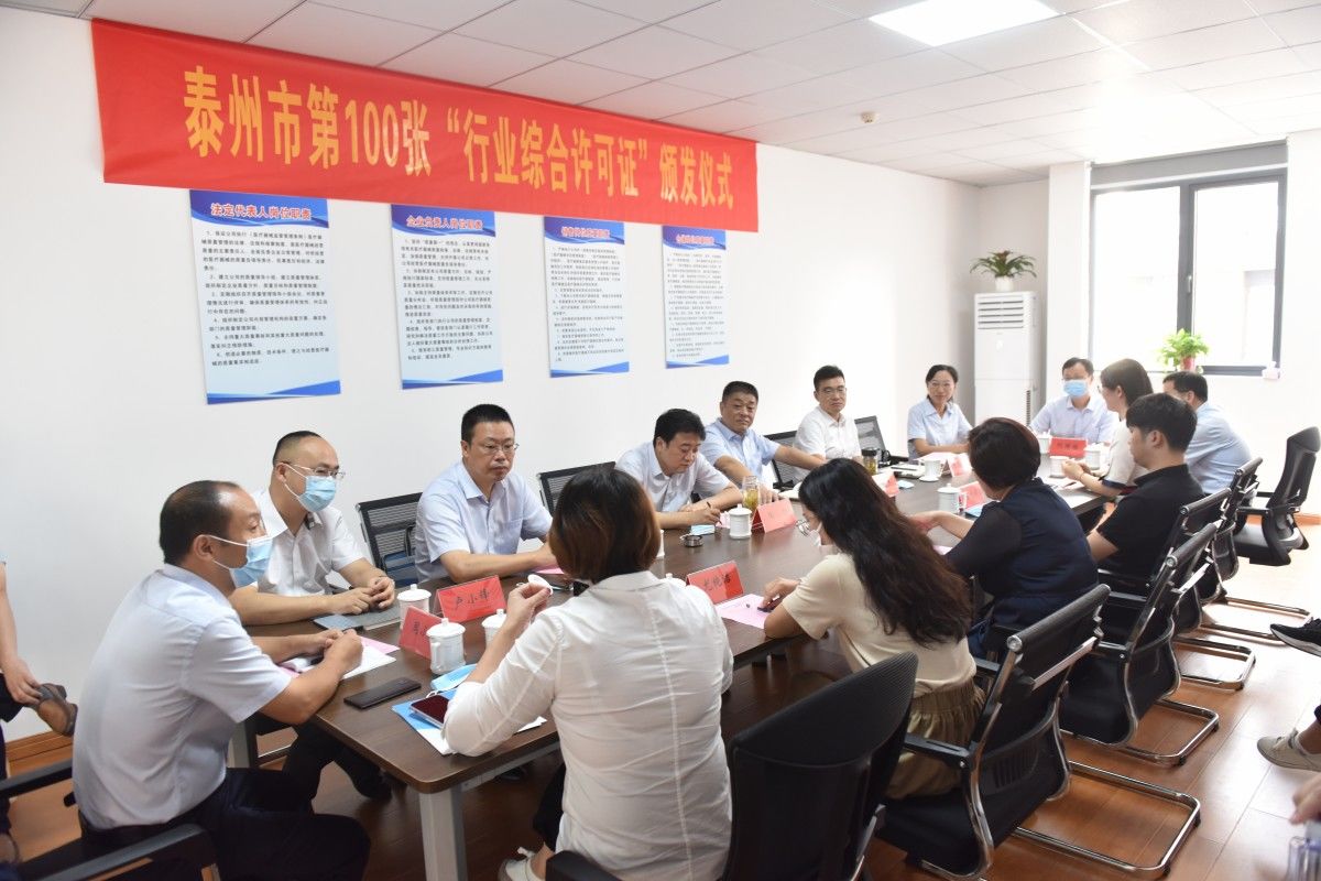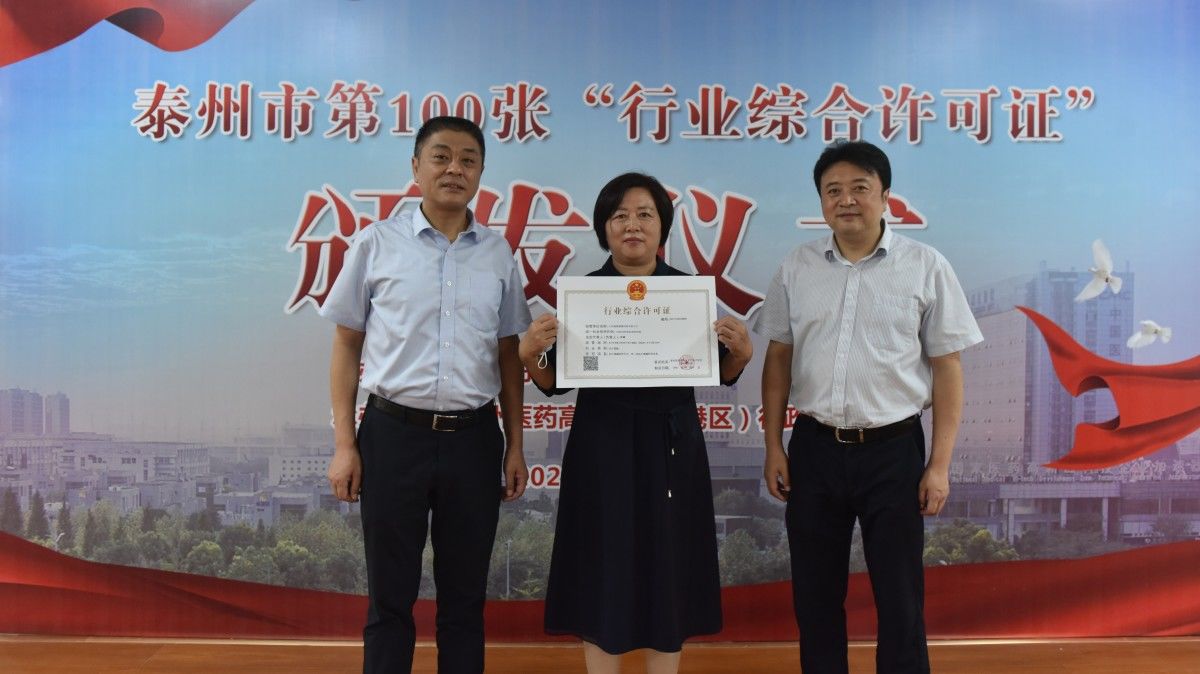 9月15日下午,泰州市第100张行业综合许可证在中国医药城高端医疗器械产业集聚区正式颁发。