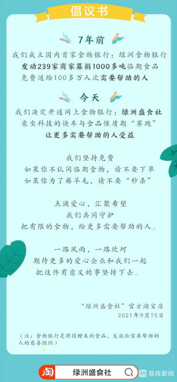 此外,还在淘宝店铺内挂出“倡议书”,呼吁大家不要“薅羊毛”。倡议书得到网友积极回应,在豆瓣抠门小组、豆瓣临期食品小组内,都置顶了网友转载的倡议帖子。