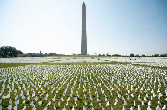 海外网9月17日电 据《今日美国》16日报道,目前,美国华盛顿国家广场上竖立了66万面白色旗帜,以纪念因感染新冠病毒去世的人。据悉,该展览名为“在美国:记住”,将从9月17日对公众开放,10月3日结束。