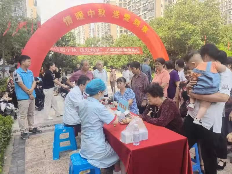 一年好景君须记,最是橙黄橘绿时。2021年9月16日,一个秋高气爽的早上,漕湖人民医院医务科科长姚晨渔带队,在中铁四局二公司退休职工居住的小区,开展了“情暖中秋,送爱到家”主题志愿服务活动,把优质医疗资源送到基层社区。