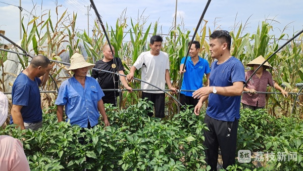 大许镇板桥村党员中心户赵新华现场指导党员、群众朝天椒种植技术(右二)