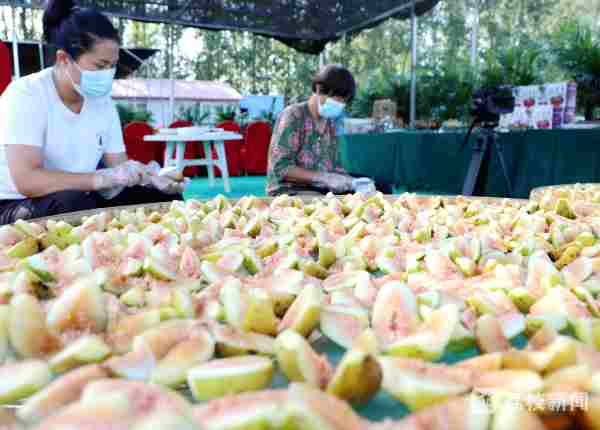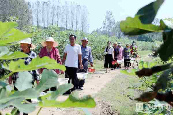 近日,在东海县石榴街道讲习村基地,近百亩的无花果迎来丰收季。记者在现场看到,绿油油的无花果树上,挂满甜蜜的果实。一拨拨游客来到无花果园采摘,感受丰收的喜悦和采摘的乐趣。果农们正忙着将成熟的无花果采摘下来,切块、烘干进行销售,一片繁忙、热闹的丰收场景!无花果种植基地负责人王海浩介绍,今年基地种植的无花果已经进入盛果期,很多游客是从山东、连云港市区等地前来,这几天接待旅游团人数就达200多人。“我还没见过刚摘下的新鲜无花果,这次是自己亲手摘下来,太开心了。”来自外地的游客在讲习无花果种植基地,体验采摘的快乐。