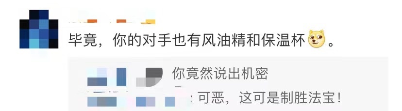 网友立刻献上神回复:毕竟你的对手都有保温杯和风油精。
