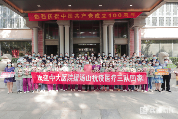 据介绍,在此次凯旋队伍中,东南大学附属中大医院重症医学科主任医师刘松桥担任重症二队医疗组组长、临时党支部书记,重症医学科护士长俞云主管护师担任医疗队护理组组长、急诊专科护士陈云云护士长担任护理组副组长,主管护师王培培担任感控组组长;纪委副书记李拥军担任医疗队领队、集团办副主任丁杰辉担任医疗队驻点监督员。重症二队由中大医院一院两区12位医生和60位护士组成,其中近10人有过抗疫经验,曾驰援湖北、河北等地。8月2日医疗队进驻南京市公共卫生医疗中心重症医学科,第一时间进入红区,全力开展重症新冠患者的医疗救治工作。根据患者病情,医疗队迅速制定出“以重为主、防重变危、促重变轻”的救治策略,坚持“一人一策”的评估治疗原则,严格落实国家专家组会诊和查房机制,把中大重症的诊疗经验、方案与模式快速融入南京市公共卫生医疗中心。经过短时间对新冠患者的诊治及管理,中大重症二队队员的业务能力和技术得到了国家专家组以及省联合医疗队的肯定和称赞。历经近33个日夜的抗疫战斗后,9月5日圆满完成南京市公共卫生医疗中心危重型、重症、普通型高危新冠肺炎患者的救治任务后进行了为期两周的隔离休整。